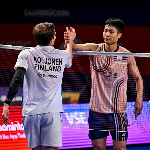 Kalle Koljoselle uskomaton voitto Hylo Openissa – maailmanlistan sijalla 55 oleva Koljonen voitti sijalla 6 olevan Chou Tien Chen.